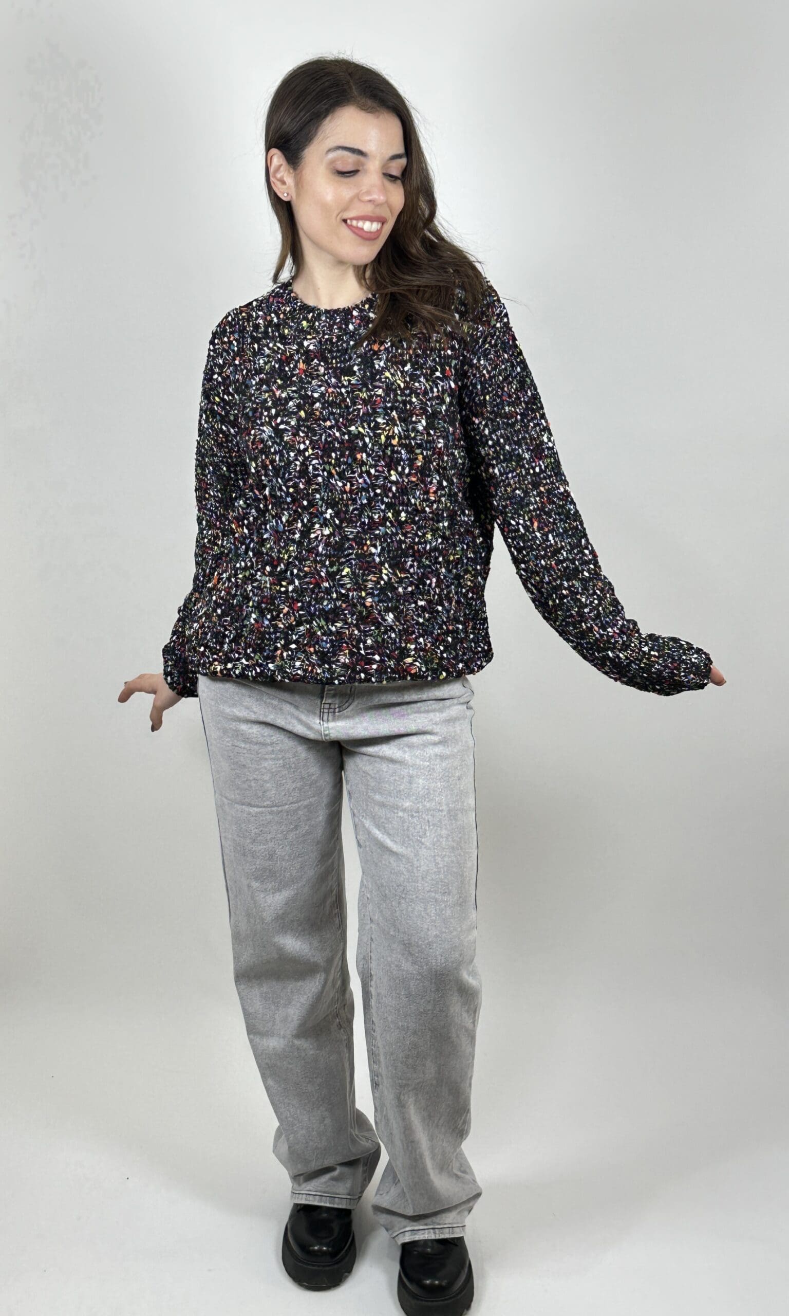 Μπλούζα πιτσιλωτή λαιμόκοψη σε ίσια γραμμή one size
