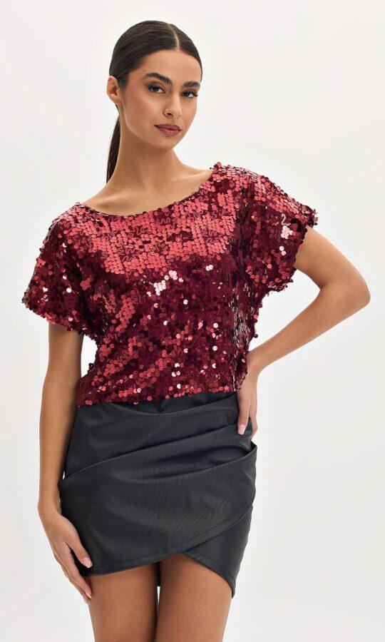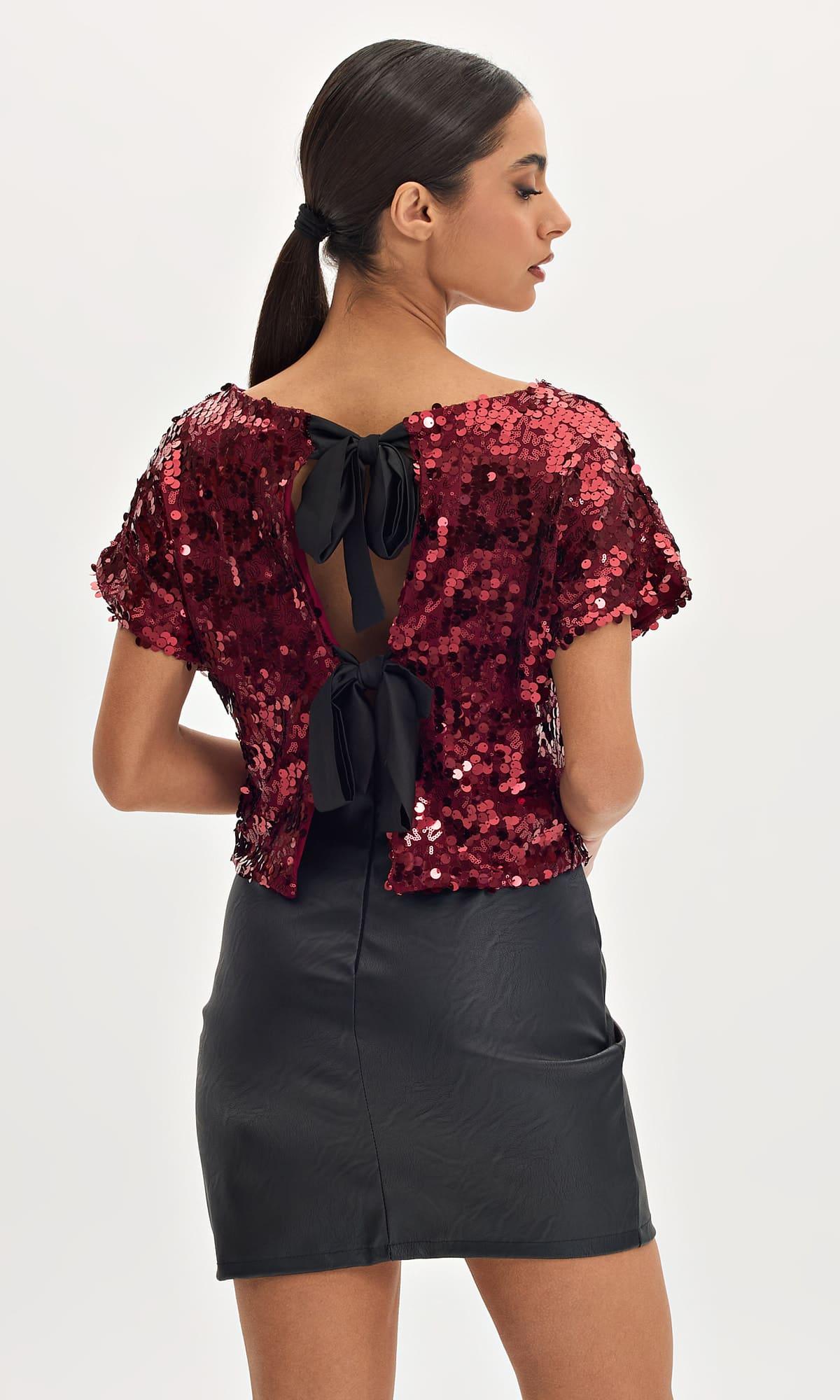 Μπλούζα παγέτα κοντομάνικη με φιόγκους στην πλάτη.