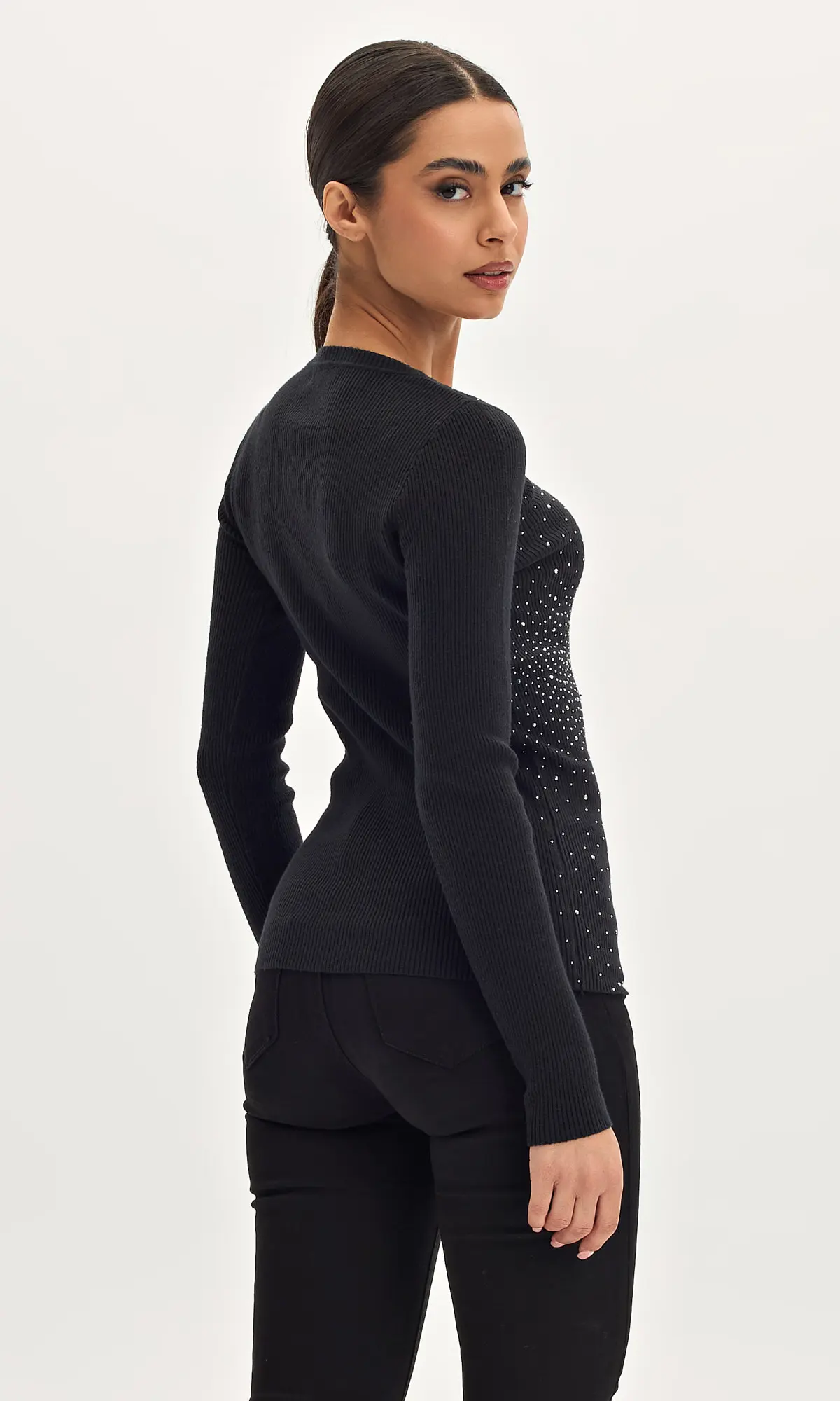 Μπλούζα ριπ ελαστική με λαιμόκοψη.Έχει στρας στο μπροστινό μέρος. Καλύπτει έως Large.