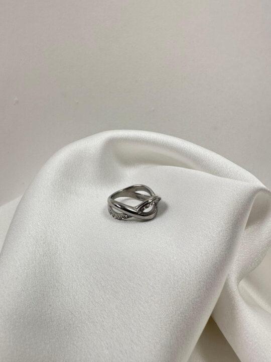 Ατσάλινο δαχτυλίδι σχήμα άπειρο με στρας σε ασημένιο χρώμα