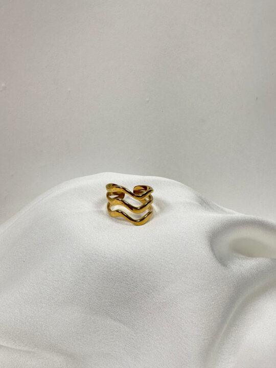 Ατσάλινο δαχτυλίδι σε χρυσό χρώμα και σχήμα τριπλέτα