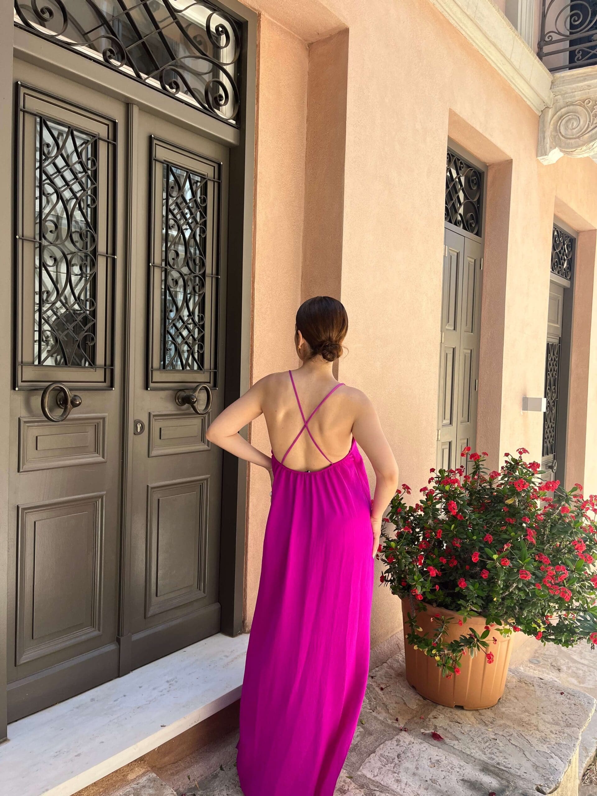Φόρεμα One size σε άνετη γραμμή, κάνει χιαστί πίσω και διαθέτει λάστιχο στο πίσω μέρος για περισσότερη άνεση