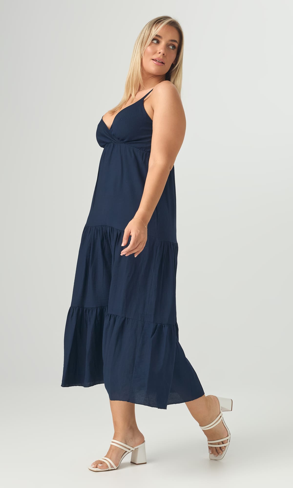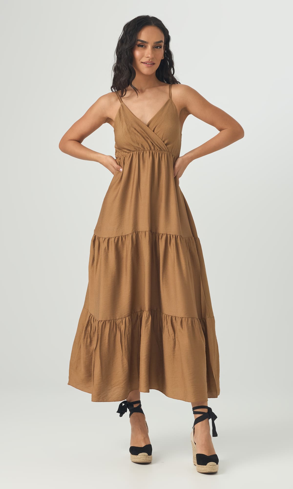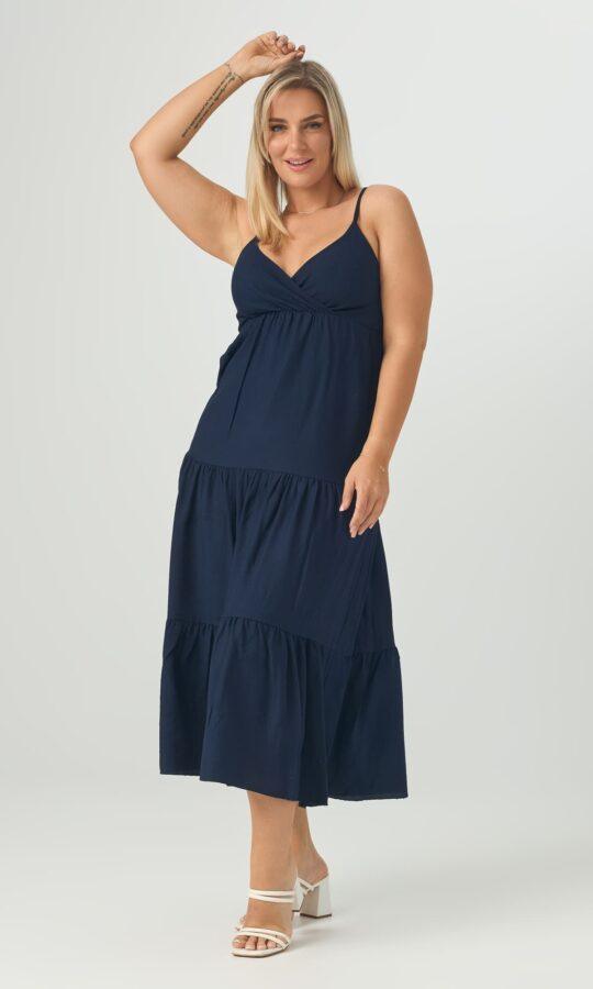 Φόρεμα με τιράντες σε άνετη γραμμή. Έχει Σούρα στην πλάτη για να προσαρμόζεται καλύτερα στο σώμα.Σε ύφασμα Κρεπ
