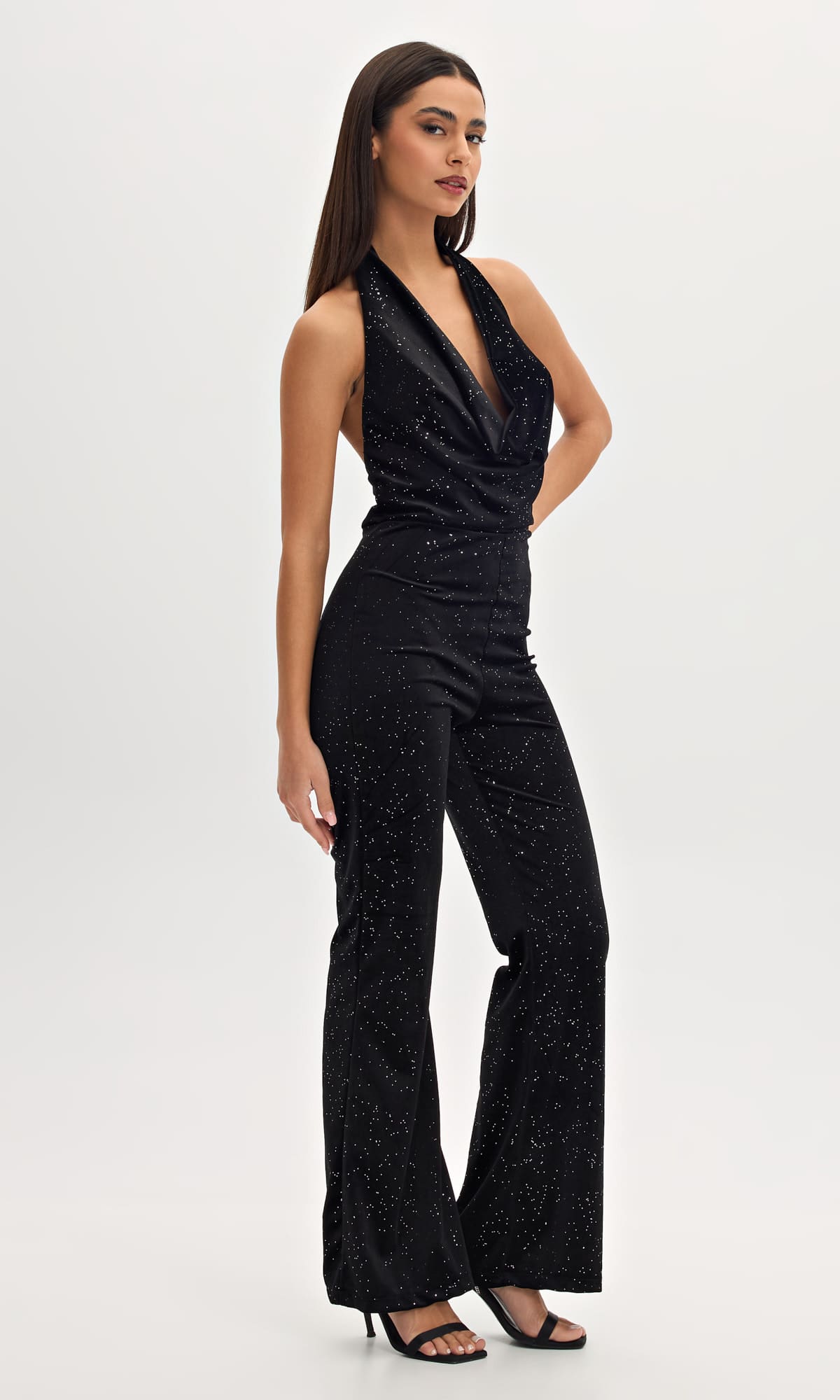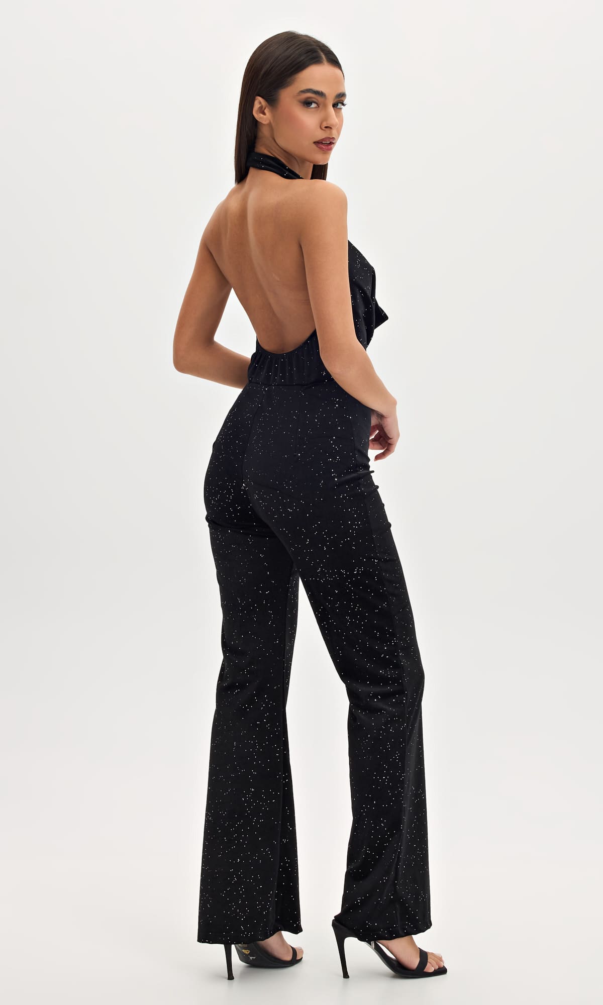 Φόρμα βελουτέ ολόσωμη  με ασημοκλωστή. Κάνει ντραπέ στο στήθος και ειναι εξώπλατη.