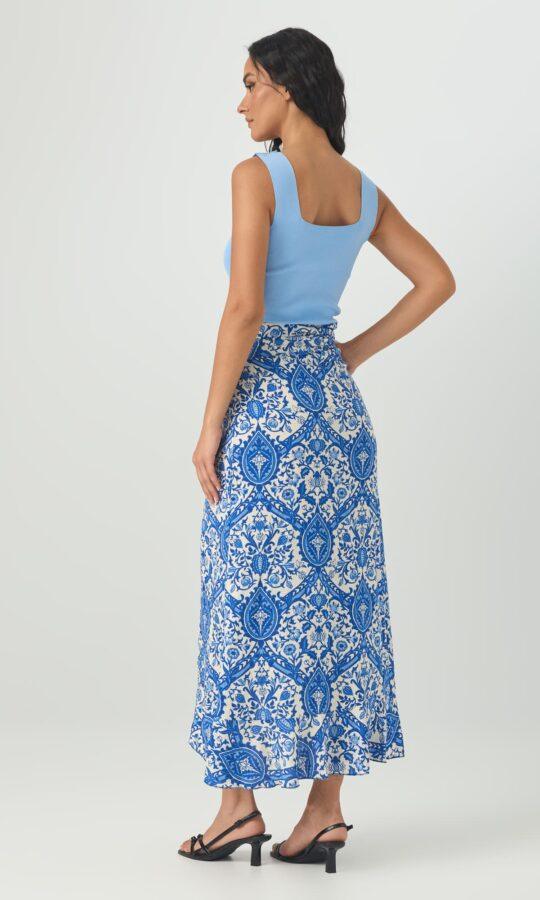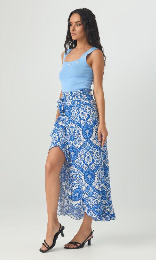 Φούστα τύπου παρεό μακριά. Κάνει κρουαζέ και δένει γύρω από τη μέση. Το ύφασμά της είναι βισκόζ και καλύπτει μέχρι large.