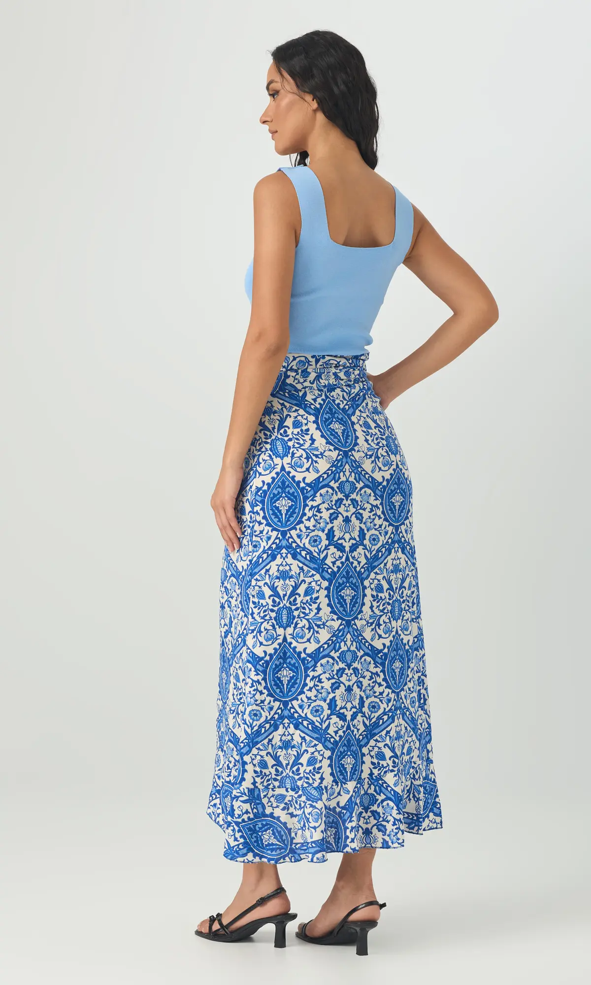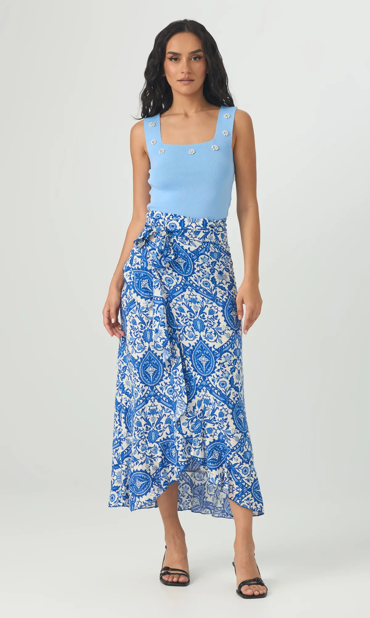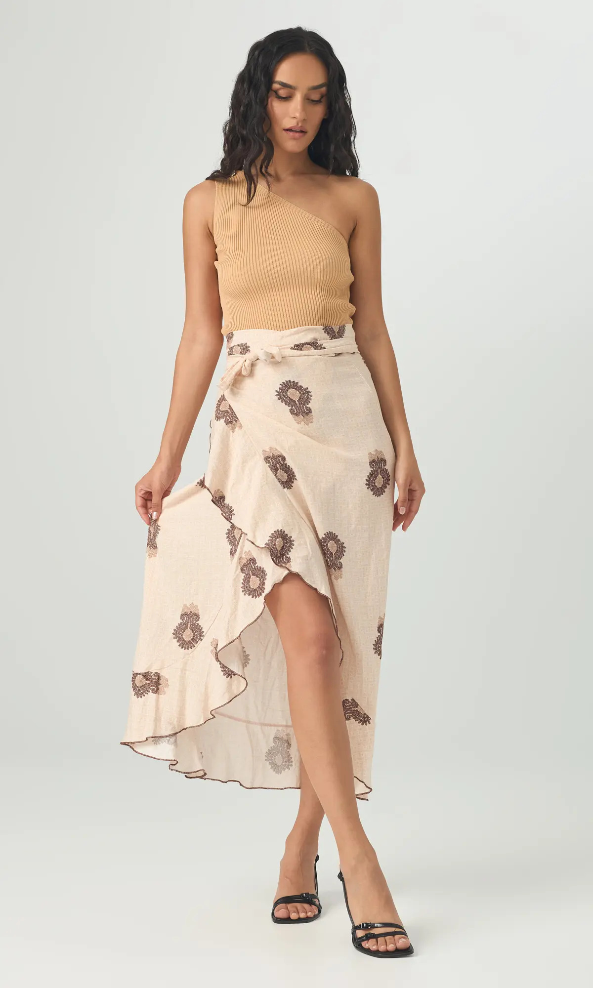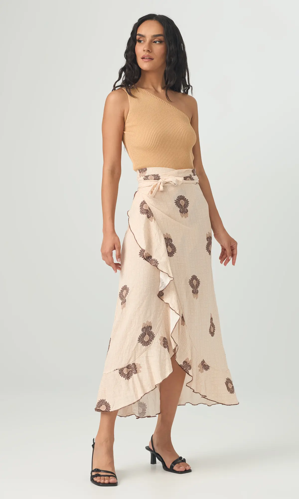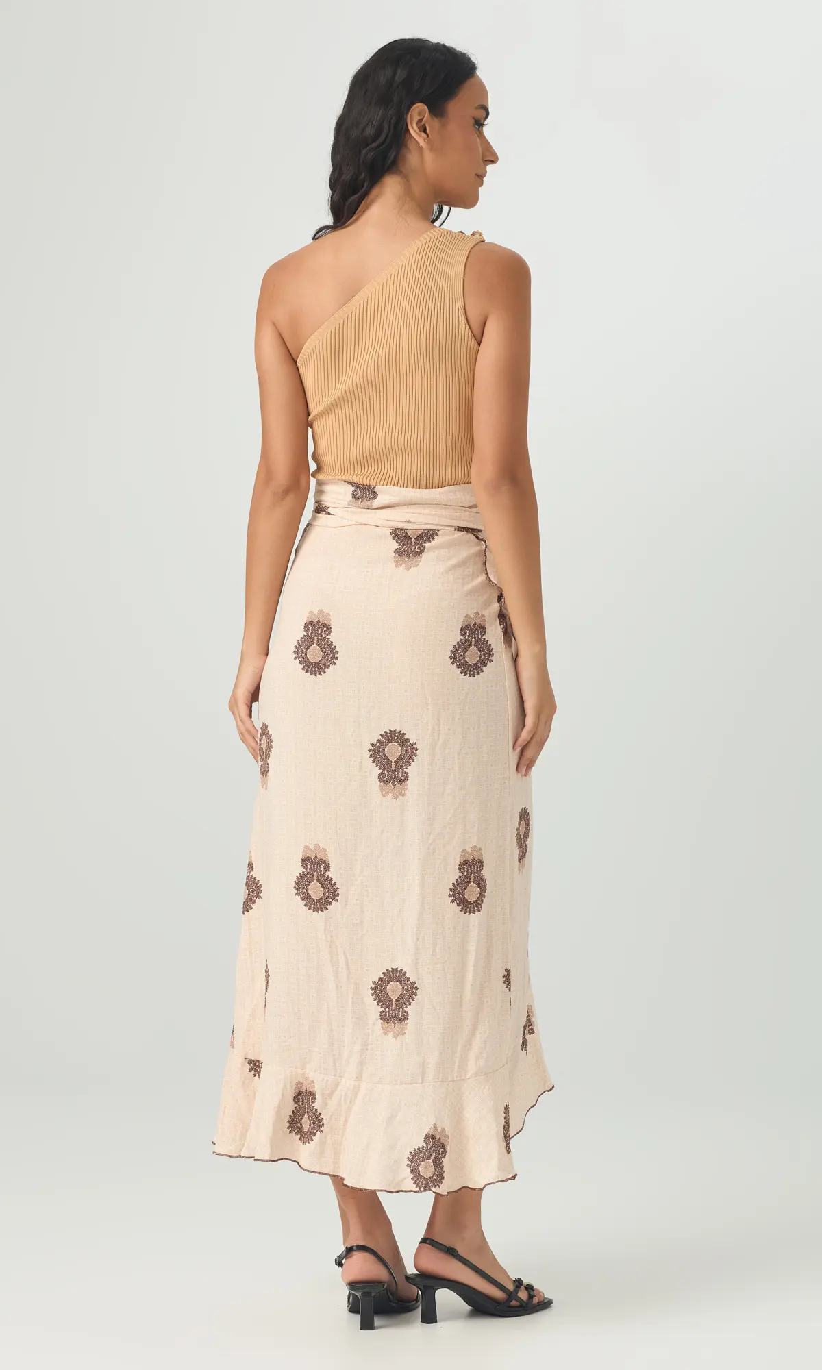 Φούστα τύπου παρεό μακριά. Κάνει κρουαζέ και δένει γύρω από τη μέση. Το ύφασμά της είναι βισκόζ και καλύπτει μέχρι large.