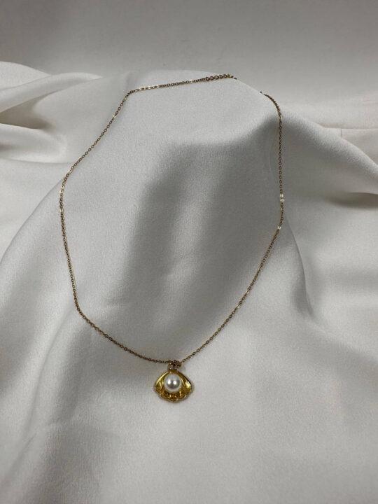 Ατσάλινο κολιέ σε σχήμα κοχύλι με μαργαριτάρι μεσα