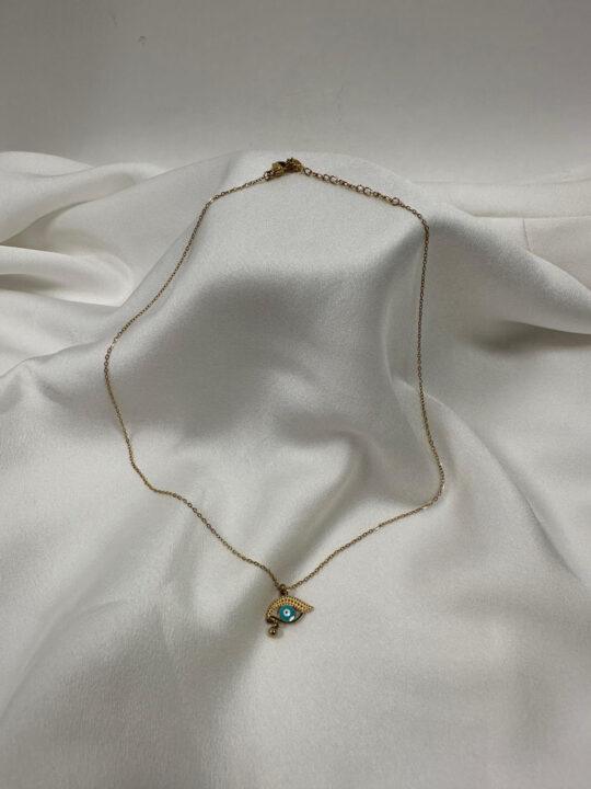 Ατσάλινο κολιέ με ματάκι σε χρυσό χρώμα