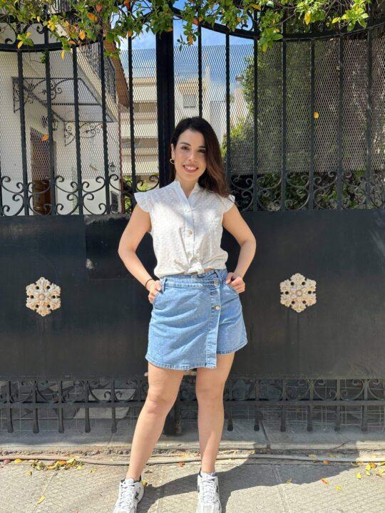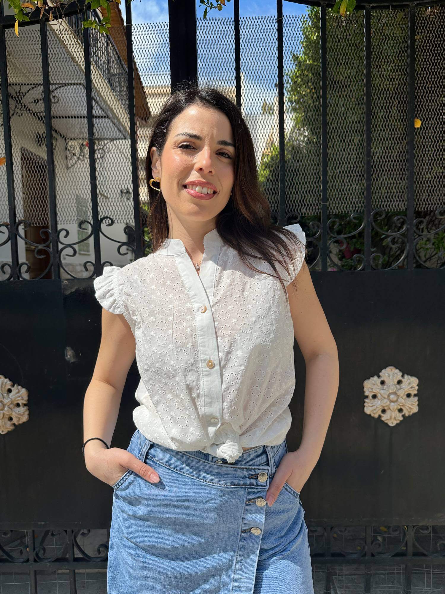 Πουκάμισο κηπούρ που δένει στο μπροστινό μέρος Και κάνει βολάν στα μανίκια.Στο πίσω μέρος δεν κάνει κηπούρ.