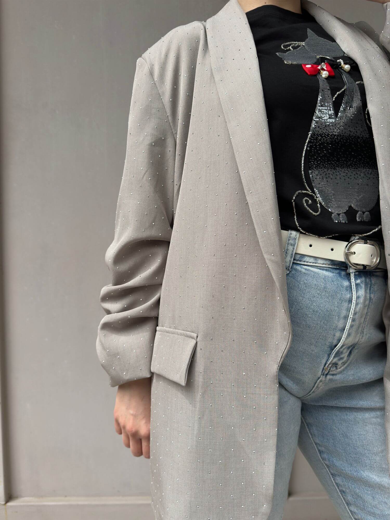 Σακάκι Blazer με σούρα στο μανίκι σε άνετη γραμμή.Είναι one size  Καλύπτει έως large.