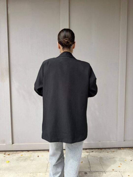 Σακάκι oversized σε άνετη γραμμή, κάνει rever το μανίκι και έχει φόδρα ριγέ. Είναι One size και καλύπτει έως extra Large.