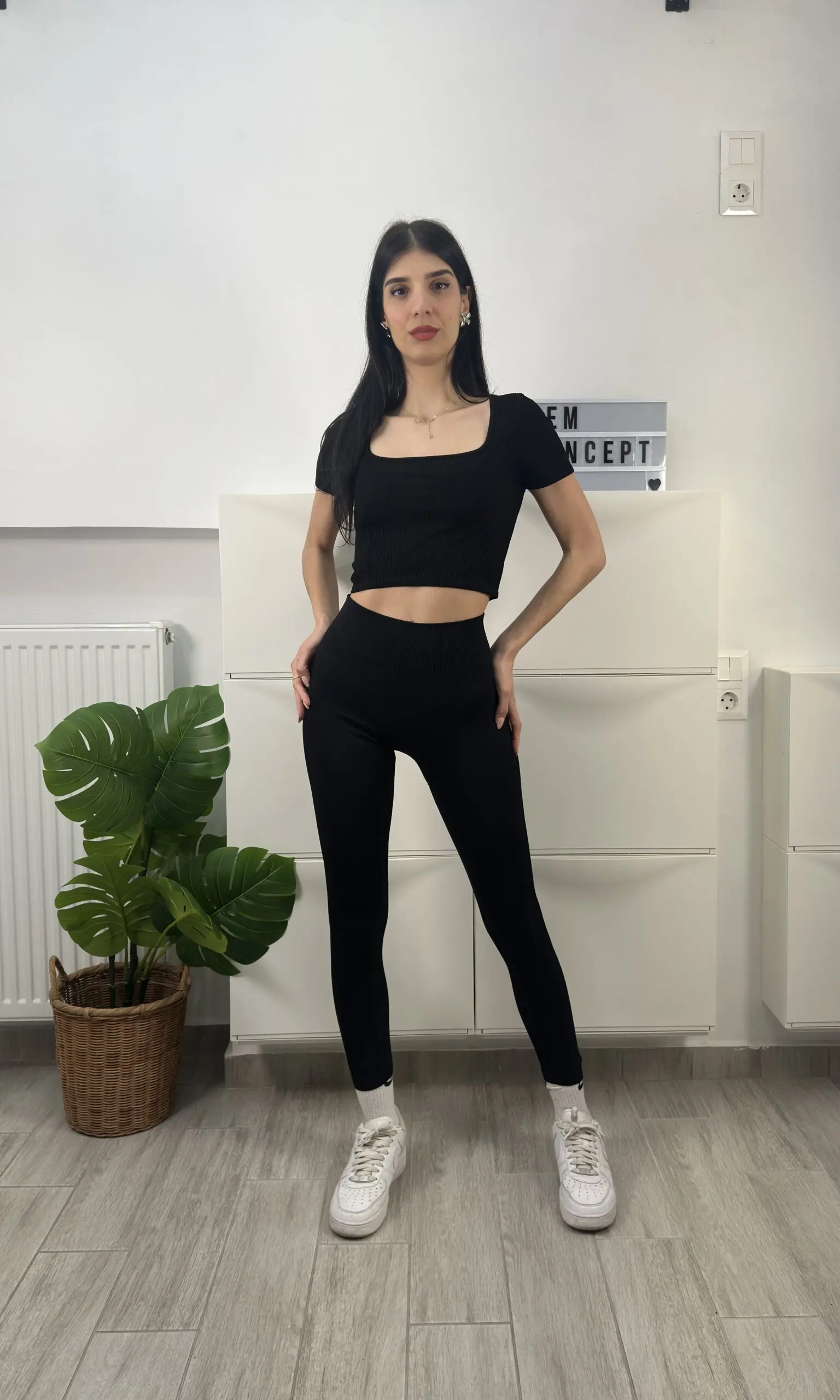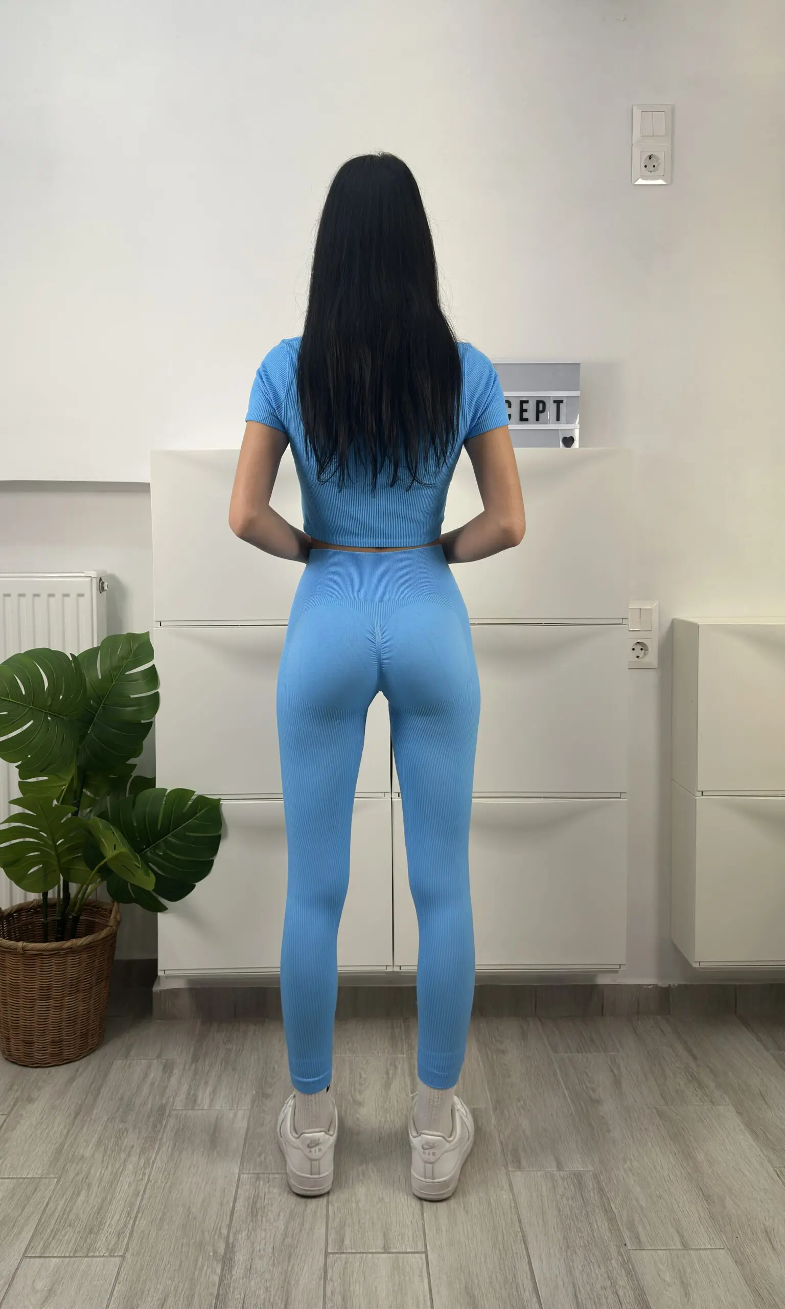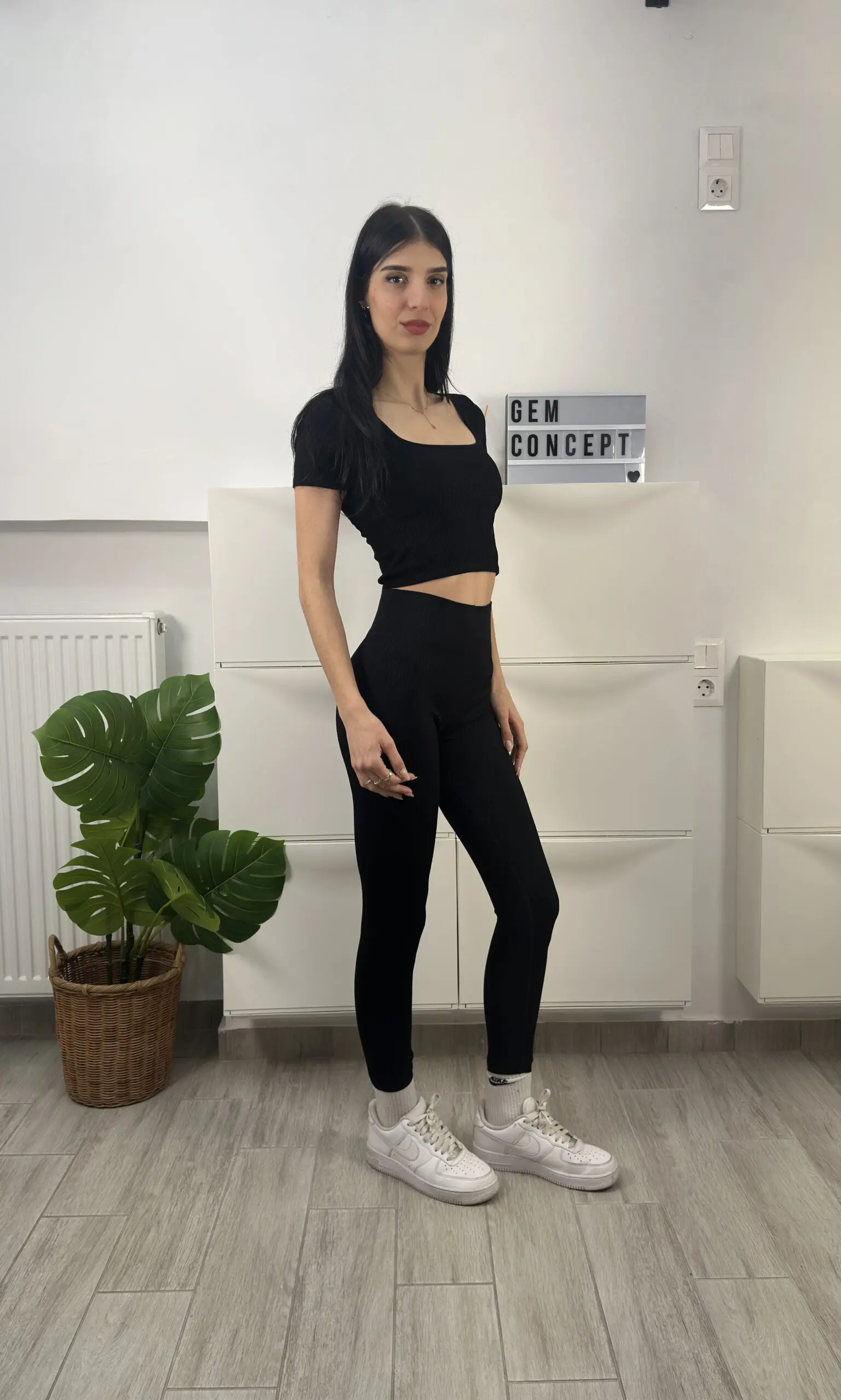 Σετ ριπ ελαστικό που αποτελείται απο cropped μπλουζάκι και κολάν.Είναι αρκετά ελαστικό αγκαλιάζει το σώμα και καλύπτει έως Large