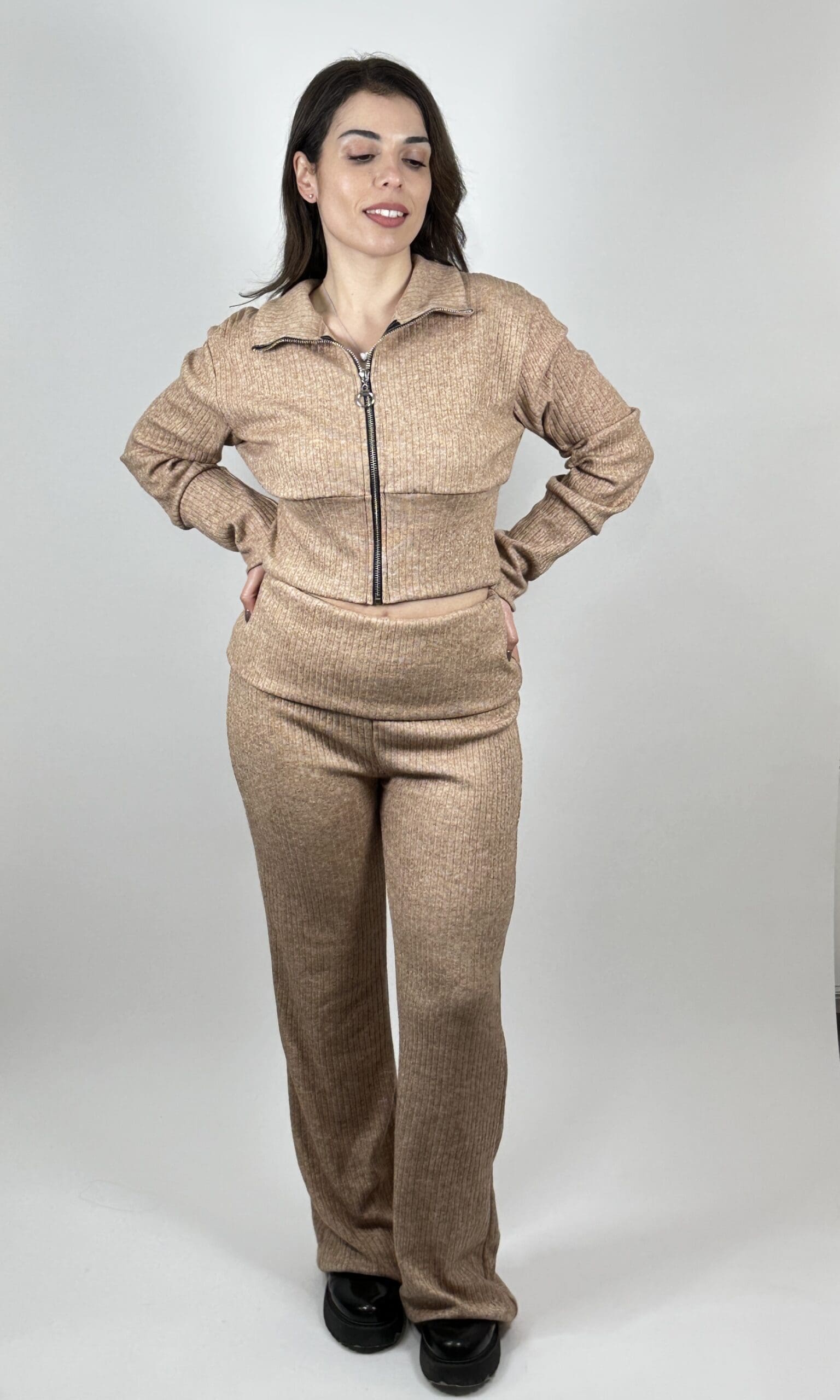 Σετ Ριπ ελαστικό σε στενή γραμμή. Αποτελείται από ζακέτα και και παντελόνι που διπλώνει στην μέση. Είναι Onesize.