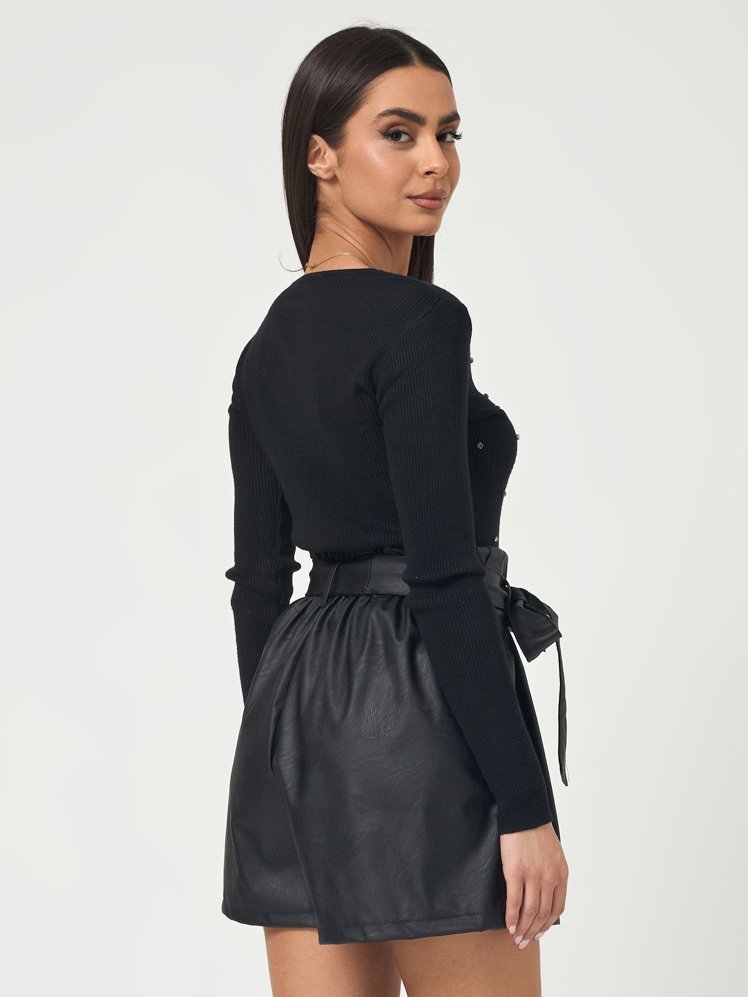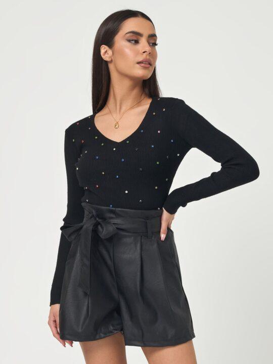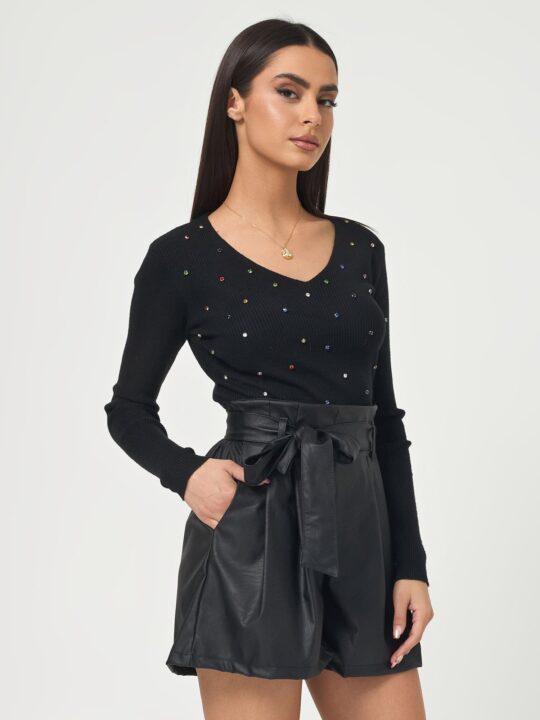Σορτς δερματινη με λαστιχο στην μεση σε ανετη γραμμη