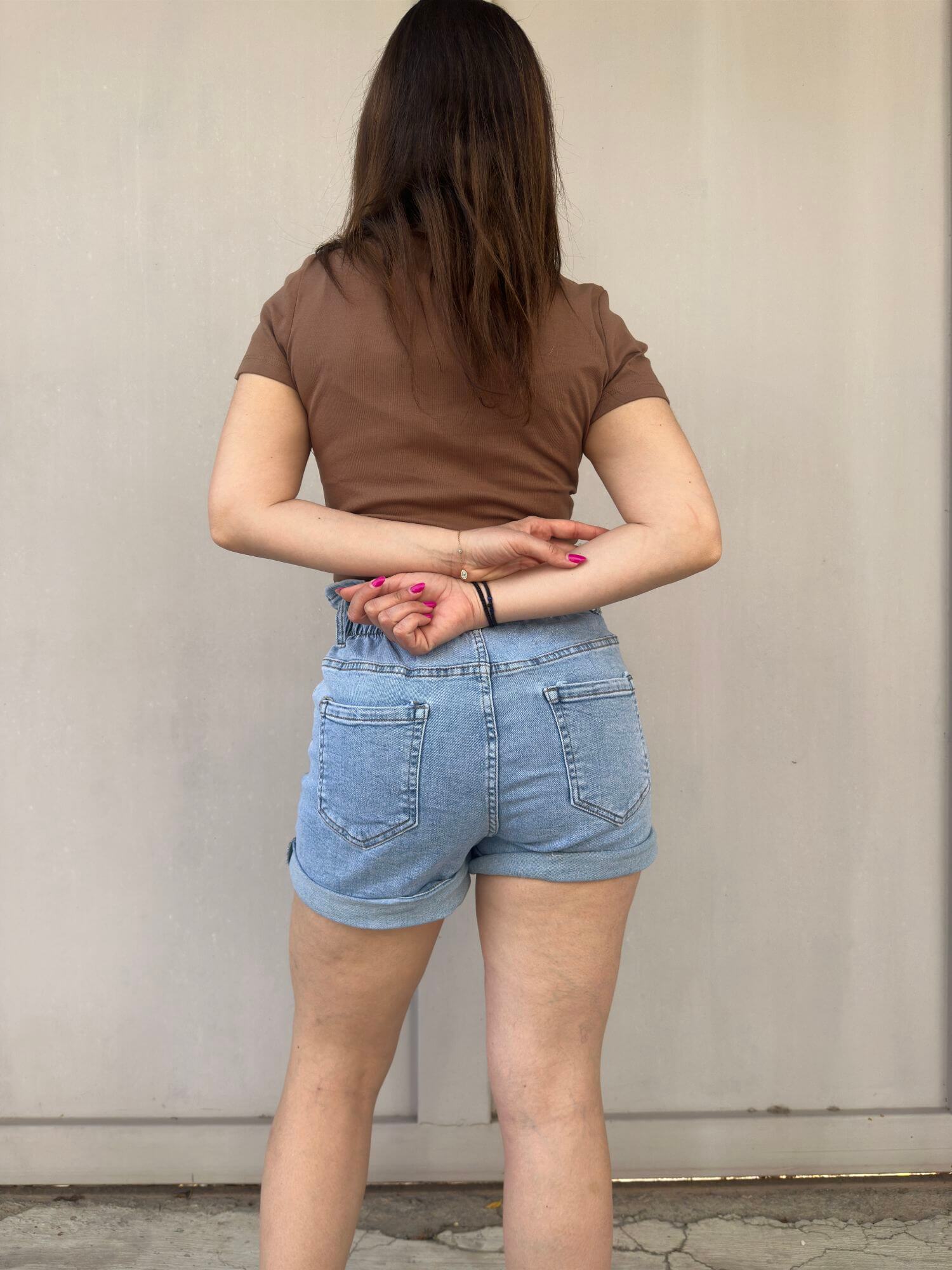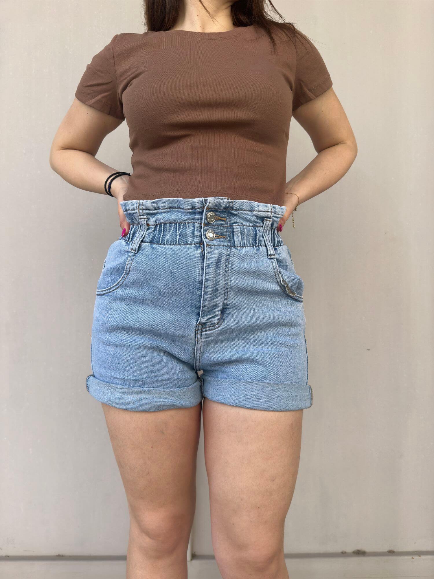 Σορτς με σούρα στην μέση σε ελαστική γραμμή. Έχει τσέπες μπροστά και πίσω και  βγαίνει από extra small- extra Large.