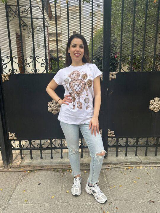 T-shirt βαμβακερό με στάμπα αερόστατο. Καλύπτει εως Large.