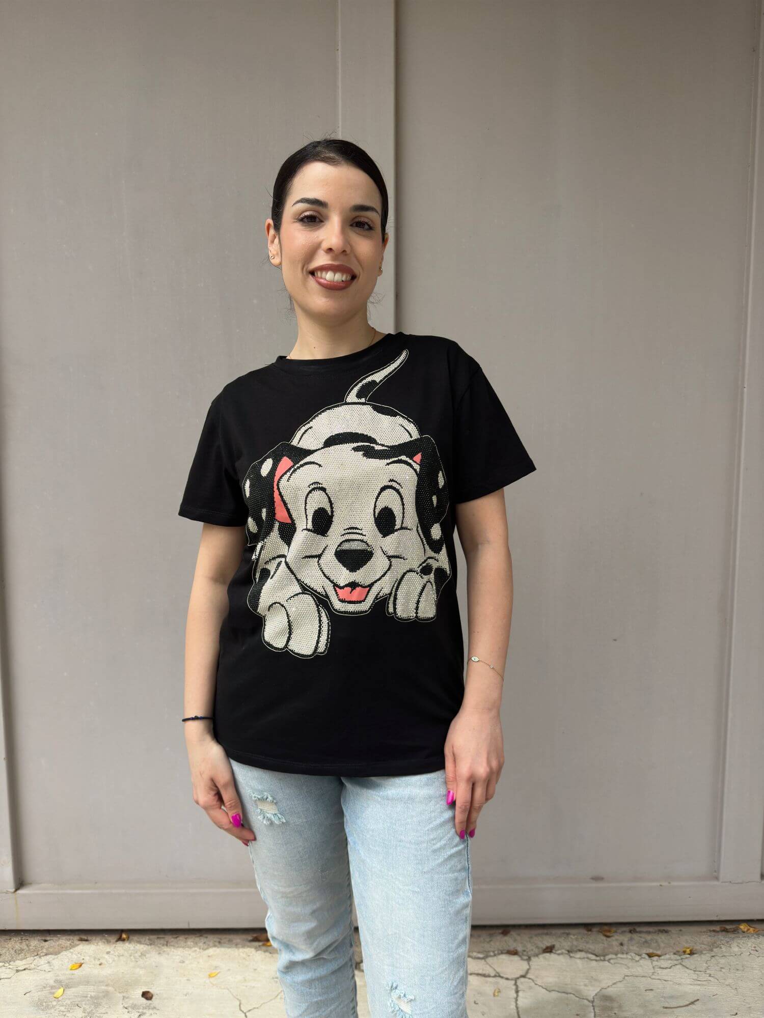 T-shirt με στάμπα σκυλάκι με στρας one size.