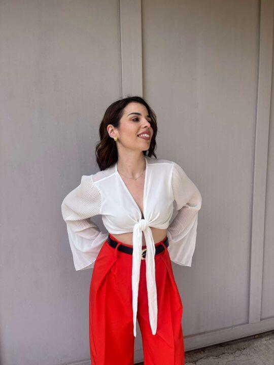 Τοπ σε υφασμα ζορζετα με δεσιμο στο μπροστινο μερος. Καλυπτει εως Extra Large