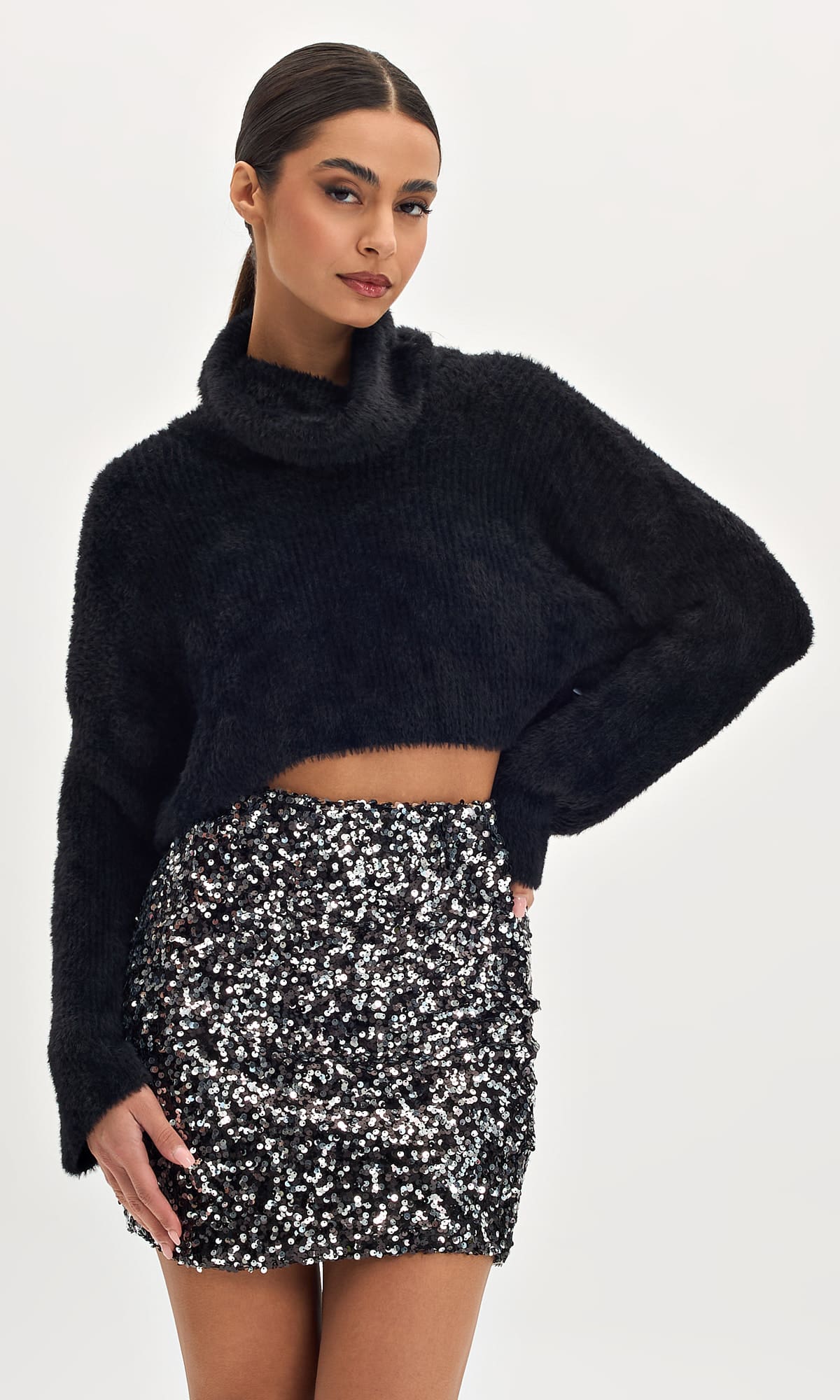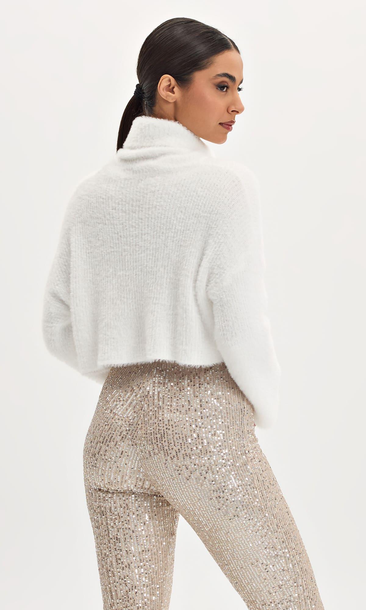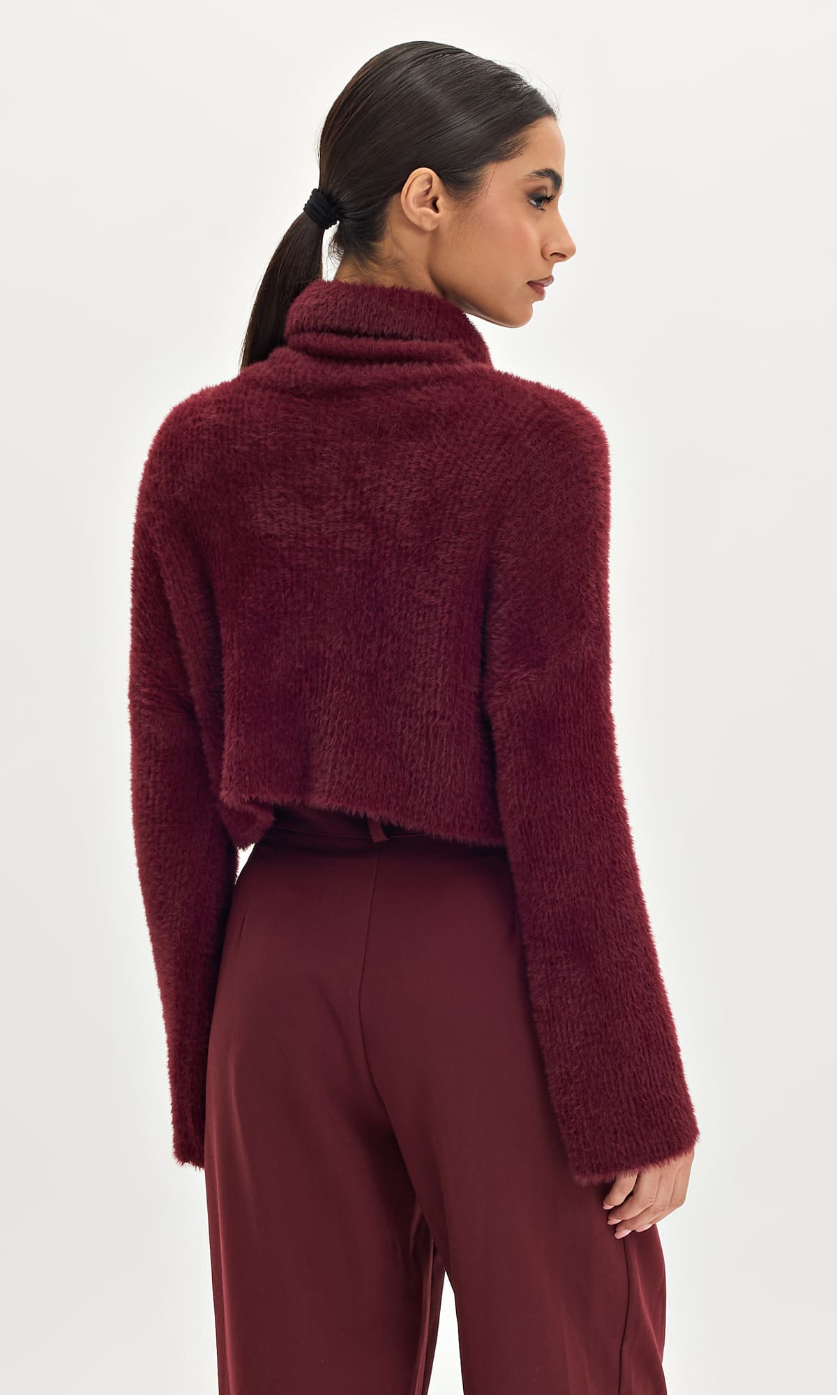 Τοπ πλεκτό ζιβάγκο σε άνετη γραμμή. Τα μανίκια στο τελείωμα τους κάνουν καμπάνα.