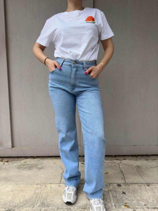 Τζιν με στρας σε γραμμή παντελόνας ψηλόμεσο. Βγαίνει απο Xs-Xl
