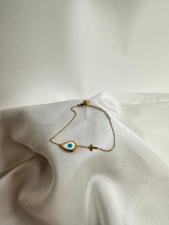 βραχιόλι με ματάκι και σταυρό απο ανοξείδωτο ατσάλι